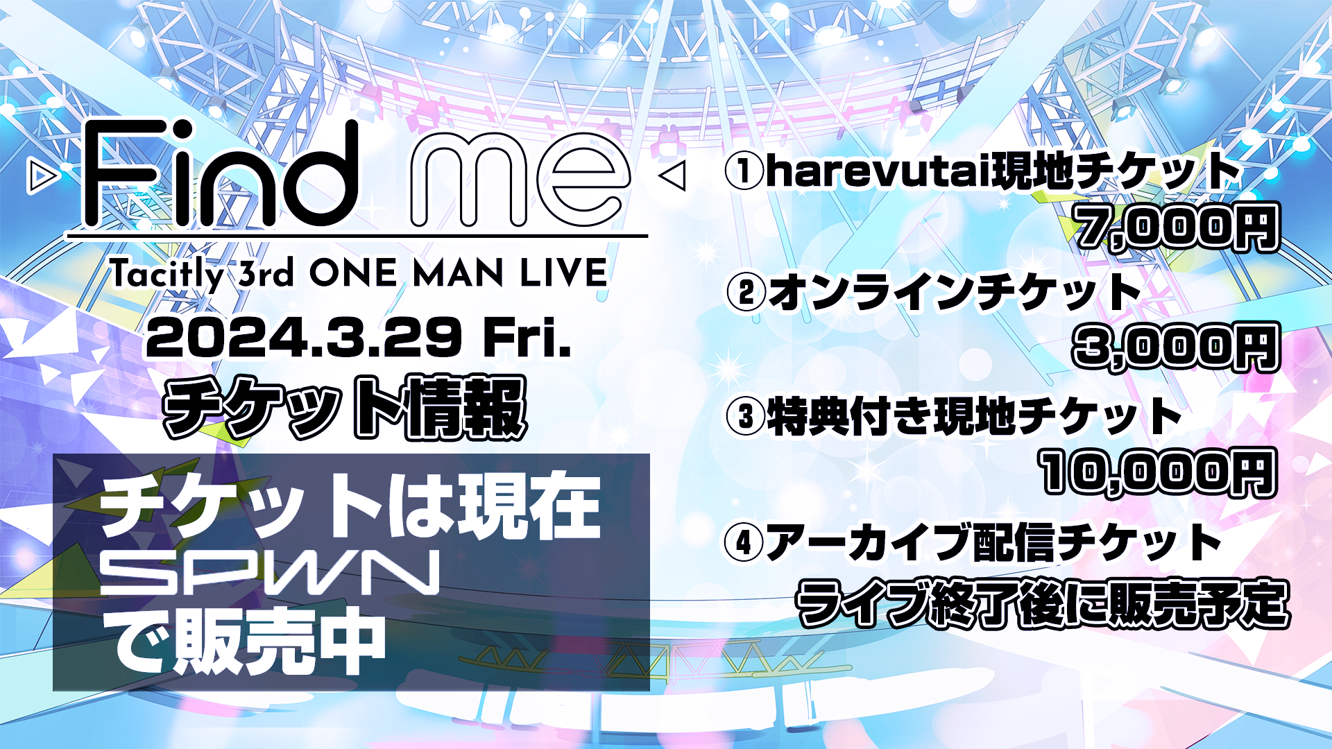 Tacitly 3rd one-man LIVE [Find me]特設ページ
