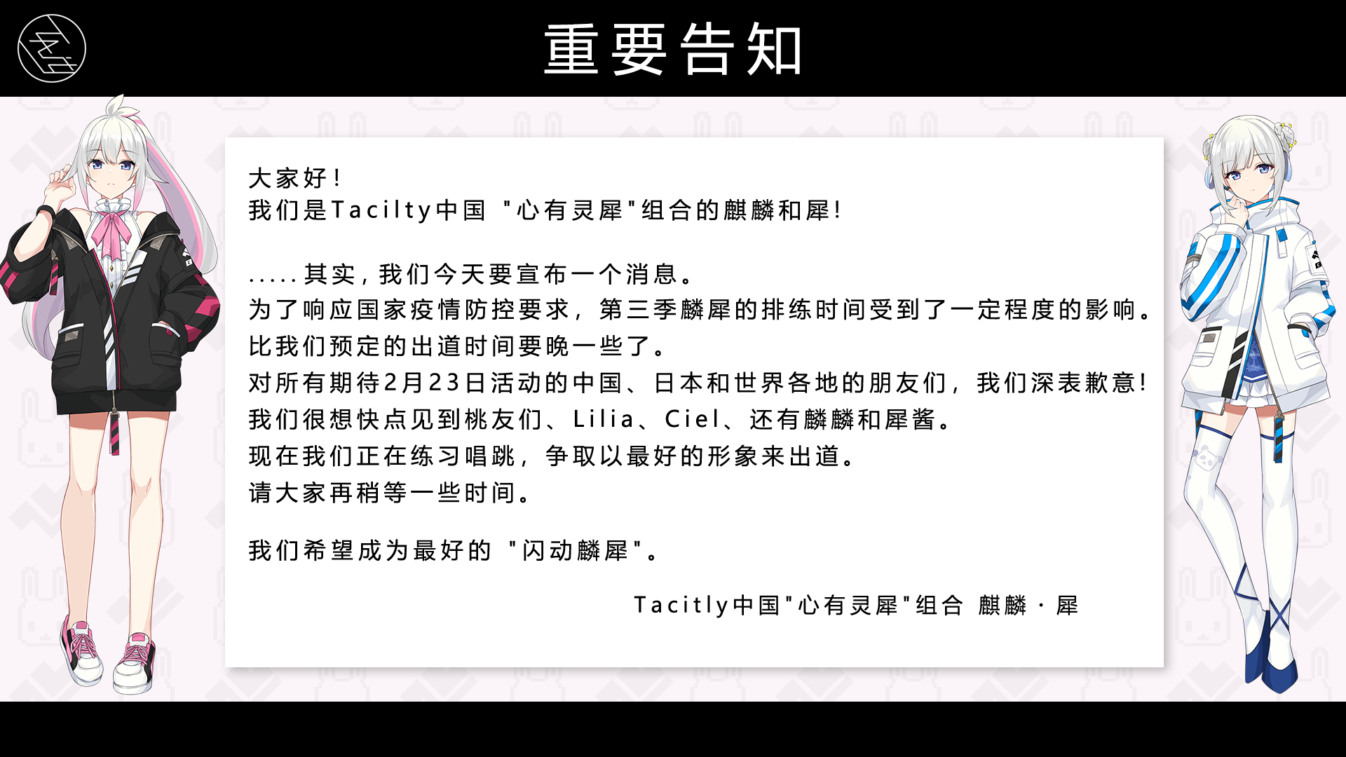 中国"心有灵犀"组合出道活动延期通知